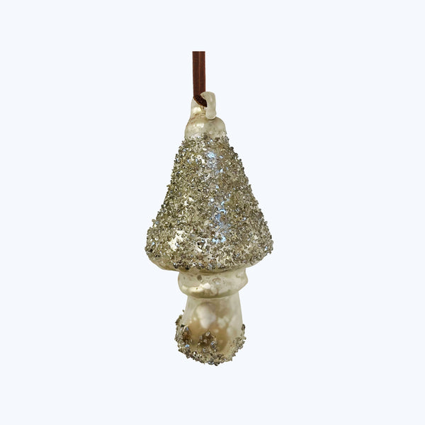 Bring a woodland touch to your interiors with the Glass Mushroom Ornament by abc home. Crafted in distressed glass and beautifully adorned with glitter, this elegant ornament adds an elevated touch to eclectic, traditional, and vintage holiday themes. Available in Bell, Button, and Cone editions.