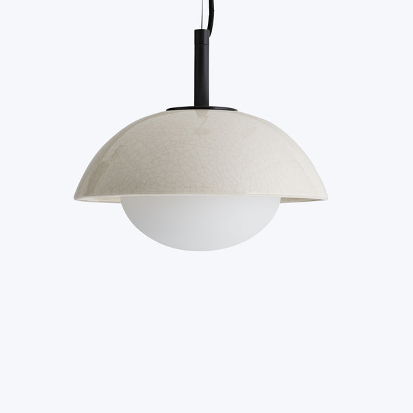 Perfect for contemporary interiors, the Glaze Pendant by Arteriors offers a compelling contrast between light and dark hues, modern and seemingly handcrafted materials. The Glaze Pendant features an opal frosted glass dome that provides a soft glow reflected and diffused by the shade's glossy texture. Hang solo or in groupings of two or more. Available in matte black and ivory stained crackle.