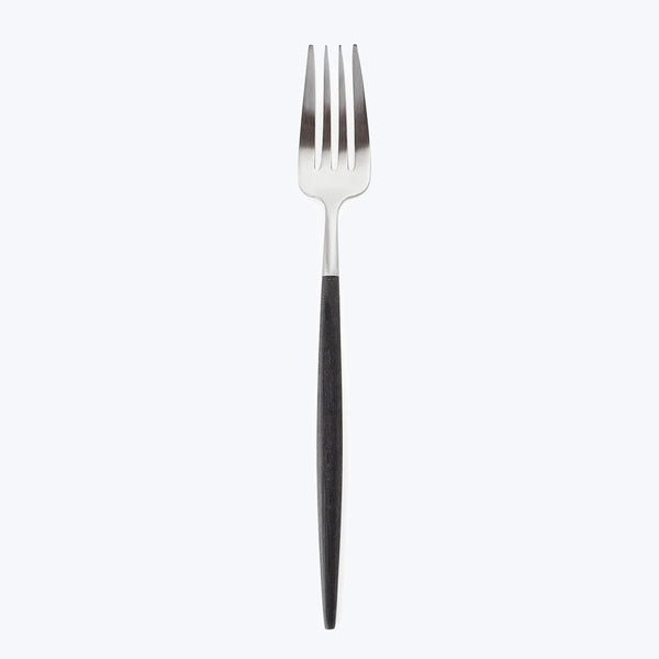 This 6-piece flatware set is beautifully rendered in durable, brushed stainless steel and finished with elongated black resin handles. Cutipol possesses an insatiable spirit of innovation and well-honed expertise gathered over generations. Dinner Fork, Tablespoon, Dinner Knife, Teaspoon, Butter Spreader, and Steak Knife sold below.