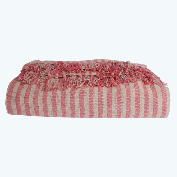 This Goa Stripe Throw is a lightweight throw blanket for all your favorite places, indoors and out! Crafted from recycled cotton this striped throw can be taken on the go for a soft foundation as a picnic blanket or beach blanket. Finished with fringe for an extra touch of texture and style.