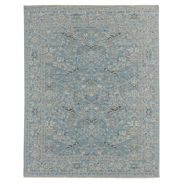 Displaying some of the most important patterns in the history of rug making, this Blue Transitional Wool Rug - 8' x 10' marries high fashion with vintage appeal. Hand-knotted from durable wool by rug artisans in India, this transitional rug is filled with modern neutral blue and cream hues that meld with traditional motifs of florals, vines, and intricate borders. Finished with an eye-catching fringe, this transitional rug is the perfect example of contemporary sensibilities and traditional oriental grace.