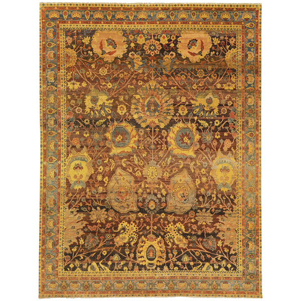 This Gold Alchemy Traditional Wool Rug, part of the Alchemy Rug Collection, offers a distinctive foundation for interior spaces. Hand-knotted from natural wool, it provides a blend of artistry and durability. This large area rug measures 8'3" by 10'10", making it suitable for anchoring various room layouts. Crafted from premium wool, this rug originates from India, known for its expertise in textile production. The hand-knotted construction ensures a dense pile and robust structure, contributing to the rug's longevity and detailed...