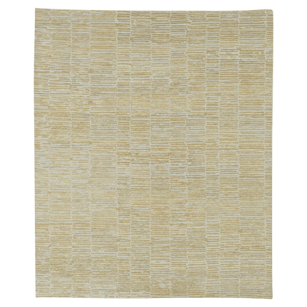 This Gold Contemporary Wool Rug - 8' x 10' is a sophisticated addition to any space. Hand-knotted in India, this contemporary rug features a subtle grid pattern in neutral shades of beige and tan. The texture is luxurious, and the wool material ensures durability and quality.