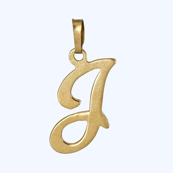 The Gold Small Cursive 'J' Charm features a simple yet elegant design in 14k Yellow Gold. The lowercase j is showcased in a flowing cursive style with a brushed metal texture. This charm is perfect for adding a personalized touch to your necklace or bracelet.