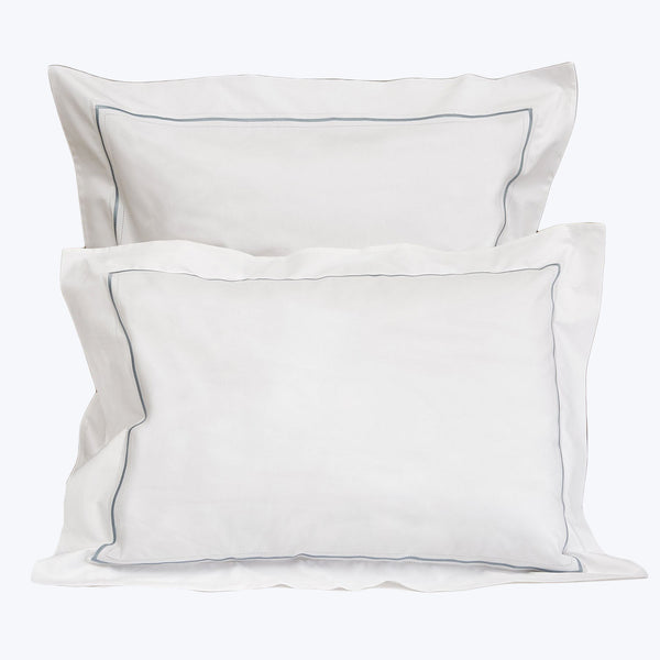 The Gramercy Duvet & Shams in White/Silver Moon from Signoria are a perfect way to elevate your bedroom with timeless elegance. Made in Italy from 100% Extra Long-Staple Cotton with a 400 thread count percale, this collection ensures a smooth and breathable feel for restful nights. The Gramercy Bedding Collection combines luxury and comfort, offering crisp yet soft bedding that creates a refined and welcoming atmosphere. The duvet is finished with a unique double hemstitch and an embroidered U-shaped design,...