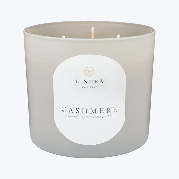 Created to fill larger spaces, the Grande 3-Wick Candle CASHMERE features notes of chamomile, amber woods, and patchouli, designed to fill your space with the comforts of home. Evoking the soft and sensual sensation of cashmere draped on skin, this LINNEA favorite is as soothing in fall as it is on a brisk day in spring. LINNEA candles are poured in small batches and crafted with renewable soy wax, all-natural cotton wicks, and the highest quality fragrant oils. All LINNEA...
