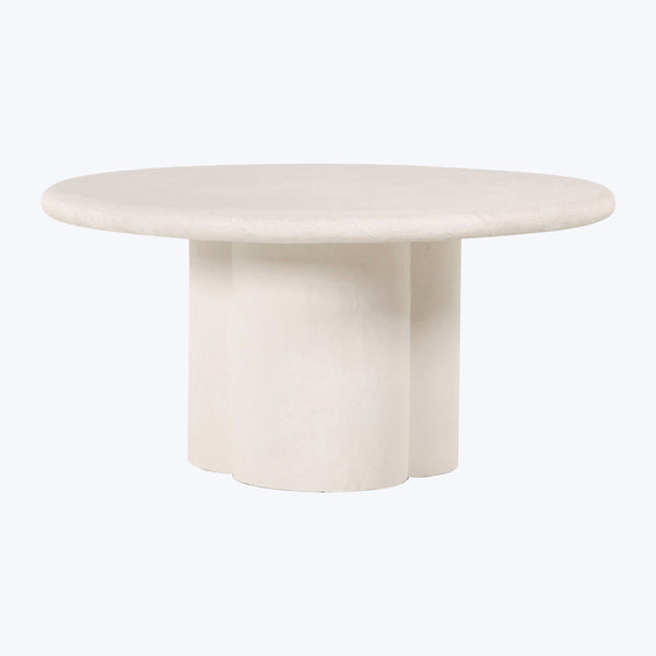 The Four Hands Grano Pedestal Dining Table, measuring 60" L x 60" W x 30" H and weighing 432.1 lb, is a striking statement piece made from white-finished plaster molded concrete. The voluminous, clover-shaped base supports a thick, rounded tabletop, offering dramatic scale and visual interest. Crafted in Vietnam, this table brings both strength and elegance to your home. With its soft yet textured finish, the Grano Dining Table creates an elevated, organic ambiance that pairs seamlessly with a variety...