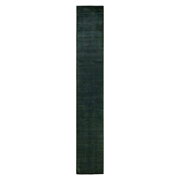 This Green Overdyed Wool Runner - 2'5" x 16'4" is a luxurious piece hand-knotted in Pakistan. The dark green hue with subtle variations creates a mottled effect, adding depth to the texture. Crafted from high-quality wool, this runner exudes elegance and sophistication.