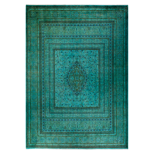 This hand-knotted overdyed wool rug from Pakistan measures 9 feet 10 inches by 14 feet 3 inches. It features a rich green color, offering a blend of traditional craftsmanship and contemporary style. Constructed from 100% natural wool, this rug provides durability and a soft texture underfoot. The hand-knotted technique ensures each rug is a unique piece, showcasing the skill of Pakistani artisans. This method contributes to the rug's longevity and quality. The overdyed process gives this rug its distinct appearance....