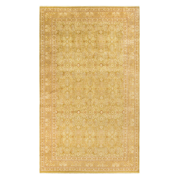 Green Yellow Traditional Mogul Wool Rug - 9'2" x 15'8"