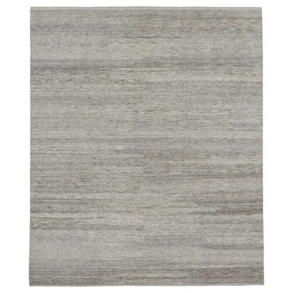 This 8' x 10' grey contemporary wool rug offers a modern foundation for various interior designs. Its neutral grey tone and substantial size make it a versatile choice for living rooms, dining areas, or master bedrooms, providing both comfort and style. Crafted from 100% wool, this rug is designed for durability and a soft feel underfoot. The natural properties of wool contribute to its resilience and ease of maintenance. Each rug is hand-knotted, a traditional method that ensures high-quality construction...
