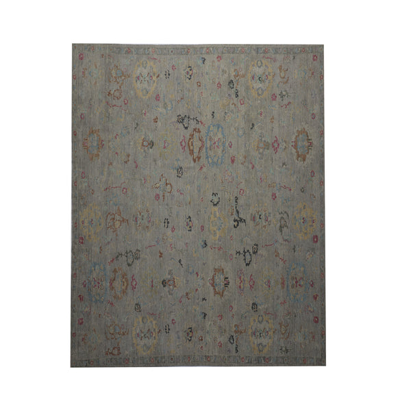 This Grey Traditional Wool Rug - 8'7" x 11'9" is a hand-knotted beauty from India. Featuring a faded grey background and traditional motifs in rich hues of red, blue, and yellow, this traditional rug combines classic and contemporary styles seamlessly. Made of high-quality wool, this rug is perfect for adding a touch of elegance to any room.