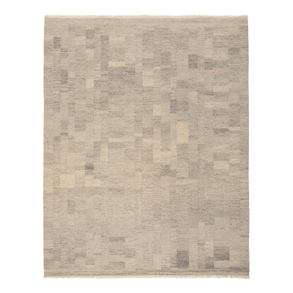 This Grey Flatweave Wool Rug, measuring 8' x 10', offers a versatile foundation for various interior designs. Hand-woven in India, it combines traditional craftsmanship with a clean, contemporary aesthetic, suitable for defining larger living spaces. Constructed from natural wool, this rug provides inherent durability and a soft texture underfoot. The flatweave technique, characteristic of kilim-style rugs, results in a low-profile design that resists wear in high-traffic areas and simplifies maintenance. This construction method also typically allows for a reversible quality,...