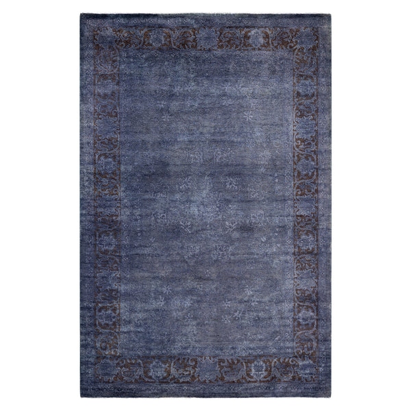 This hand-knotted overdyed wool rug measures 4'2" by 6'4", offering a versatile size for various living spaces. Crafted from 100% wool, this piece originates from Pakistan, known for its tradition in rug making. The rug features a distinct grey color achieved through the overdying process. This technique gives the wool fibers a muted, almost faded appearance, with subtle variations in tone across the surface. A refined, traditional border pattern contrasts with a more subdued, distressed motif in the central field,...