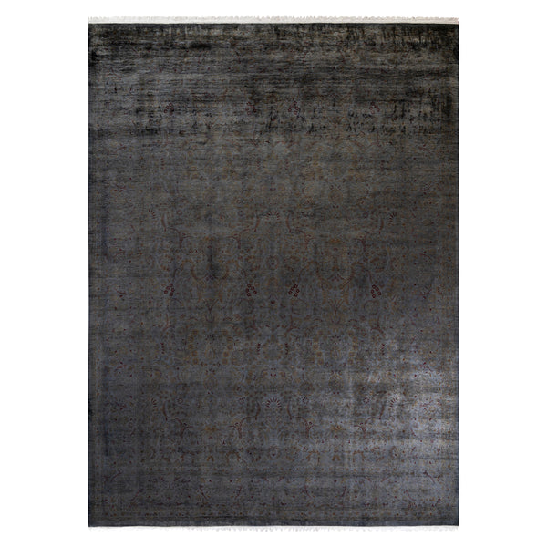 This Grey Overdyed Wool Rug, measuring 9'3" x 12'5", blends traditional craftsmanship with a modern aesthetic. Originating from Pakistan, this hand-knotted rug provides a durable and stylish foundation for various interior designs. The rug features an overdyed treatment, a process where a previously patterned rug is re-dyed. This technique mutes and blends the original colors, creating a dominant deep grey hue with a softly faded appearance. Hints of the underlying traditional pattern remain subtly visible, adding depth and a unique...