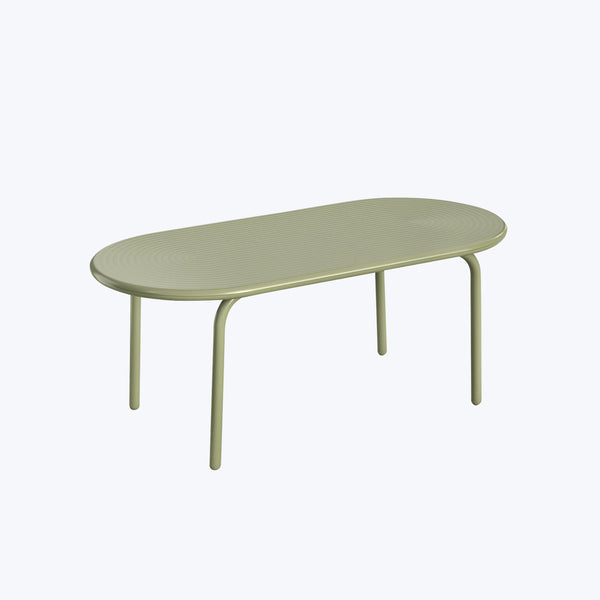Discover the Groove Obround Outdoor Table by Tom Dixon. Named for its distinctive deco-inspired tube design, this contemporary piece brings edgy elegance to outdoor spaces. The Groove is crafted in durable aluminum, making it corrosion-resistant and built to withstand all weather conditions. Available in Moss and Putty.
