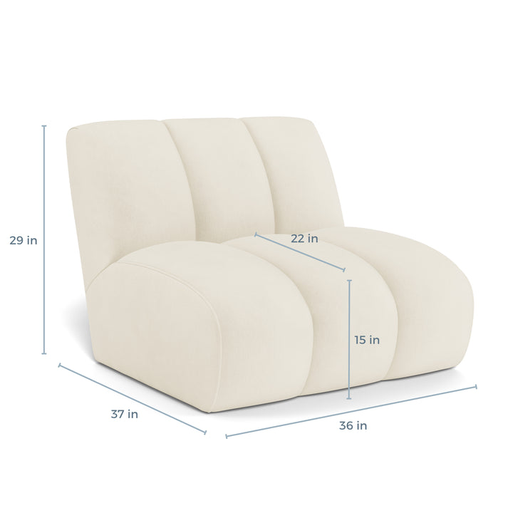 Featuring thick, vertically channeled upholstery, The Grove Armless Chair adds a textural dimension to your living space, echoing mid-century inspiration. The series of channels offer a plush, inviting surface that delivers both visual appeal and exceptional support. The modular design of the Grove Street Collection allows you to customize the configuration to suit your space and lifestyle, whether you're creating an intimate seating area or a sprawling lounge for entertaining. Expertly crafted in the USA with a sustainably-sourced Goodwood frame, this Grove Street Armless Chair is more than just a seating solution—it's a space to invite a lifetime of memories.