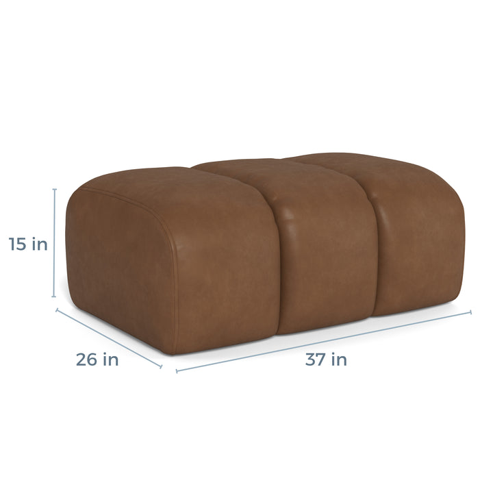 Featuring thick, vertically channeled upholstery, The Grove Street Leather Ottoman adds a textural dimension to your living space, echoing mid-century inspiration. The series of channels offer a plush, inviting surface that delivers both visual appeal and functionality. The modular design of the Grove Street Collection allows you to customize the configuration to suit your space and lifestyle, whether you're creating an intimate seating area or a sprawling lounge for entertaining. Expertly crafted in the USA with a sustainably-sourced Goodwood frame, this Grove Street Leather Ottoman is more than just a seating solution—it's a space to invite a lifetime of memories.