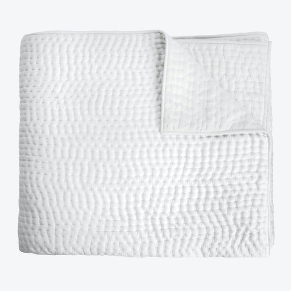 The classic hand stitched design of this white coverlet is enhanced with a relaxed pebbled texture and supple feel of soft cotton and silk.This bedding collection suits both a summer or winter bedroom and pairs easily with colorful sheet sets.