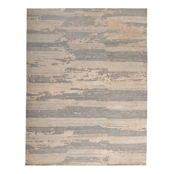 Blue & Grey Contemporary Wool Silk Blend Rug - 8' x 10'1"