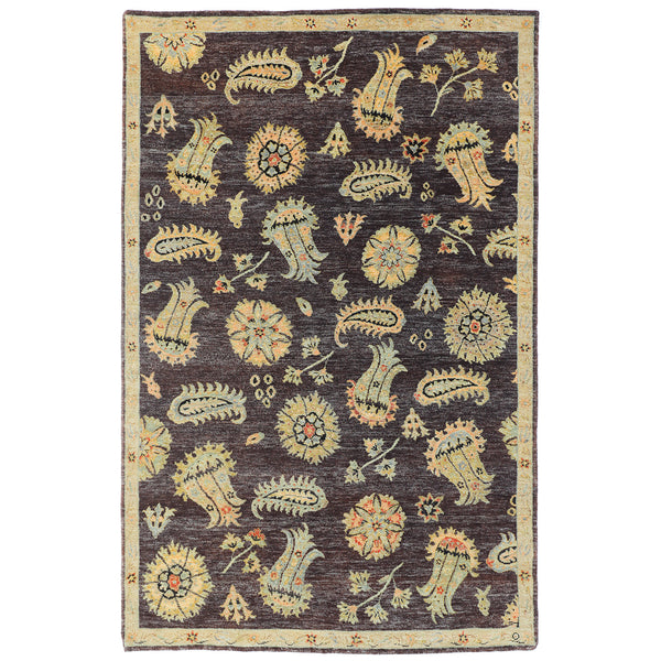 This One-of-a-Kind, Hand-Knotted Area Rug - 5' x 7'8" features a traditional suzani pattern in deep shades of brown, green, and a multitude of colors. Hand-crafted rugs are created over many months using techniques that have been passed down from generation to generation. This level of detailed craftsmanship means this one-of-a-kind rug is made to last. Hand-knotted and colored using plant-based dyes, this rug features rich, saturated colors that are eco-friendly and free from harsh chemicals and synthetic compounds.