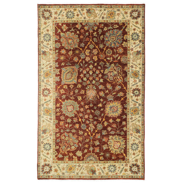 This One-of-a-Kind, Hand-Knotted Area Rug - 5' x 8'5" features a traditional floral design in eye-catching tones of burgundy, cream, yellow, and blue. Hand-crafted rugs are created over many months using techniques that have been passed down from generation to generation. This level of detailed craftsmanship means this one-of-a-kind rug is made to last. Hand-knotted and colored using plant-based dyes, this rug features rich, saturated colors that are eco-friendly and free from harsh chemicals and synthetic compounds.