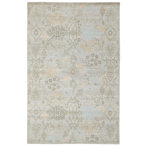 This One-of-a-Kind, Hand-Knotted Area Rug - 5'2" x 7'8" features a floral design in neutral tones of grey, blue, and yellow. Hand-crafted rugs are created over many months using techniques that have been passed down from generation to generation. This level of detailed craftsmanship means this one-of-a-kind rug is made to last. Hand-knotted and colored using plant-based dyes, this rug features rich, saturated colors that are eco-friendly and free from harsh chemicals and synthetic compounds.