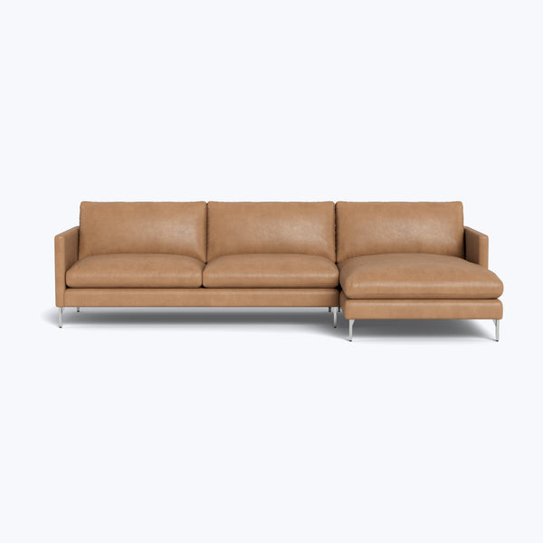 The Hannah Leather Sectional, exclusively from ABC Carpet & Home, combines the timeless appeal of leather with modern design, creating a luxurious centerpiece for any living space. The rich leather upholstery not only offers a sophisticated look but also develops a beautiful patina over time, giving the piece character as it ages. Natural markings, textures, and a soft sheen enhance the leather's unique charm, making the Hannah Sectional a stylish and durable choice for your home. Available in left arm...