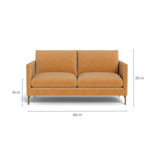 Crafted with a sustainably sourced Goodwood frame, the Hannah Loveseat reflects eco-conscious craftsmanship without compromising on quality. Choose between elegant brass or polished steel legs, each adding a touch of modern style and charm. With over 80 fabric options—including luxurious velvets, soft linens, durable blends, and premium leather—you can customize the loveseat to suit your personal aesthetic. Handcrafted and made to order, your Hannah Loveseat will be delivered to your home within 8-10 weeks.