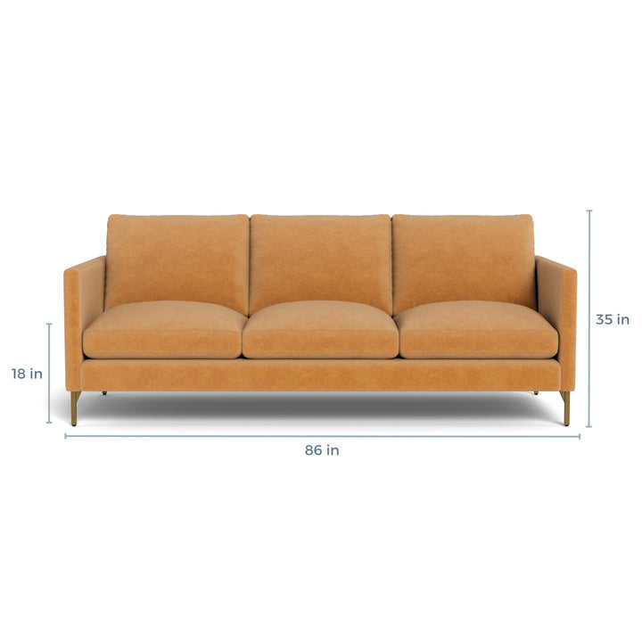 - Dimensions 86" W x 38" D x 35" H | Seat Height: 18" H | Seat Depth: 23" D | Back/Arm Height: 27" H