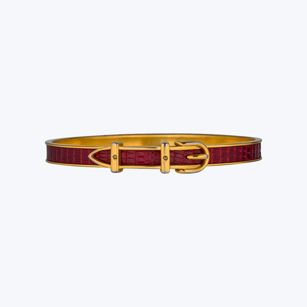 Discover the Hermès YG Leather Belt Buckle Bangle by Jewels by Grace. Featuring a beautiful blend of leather and yellow gold, this elegant bangle brings a textural touch to elevated wrist stacks. Crafted in France by the renowned luxury maker.