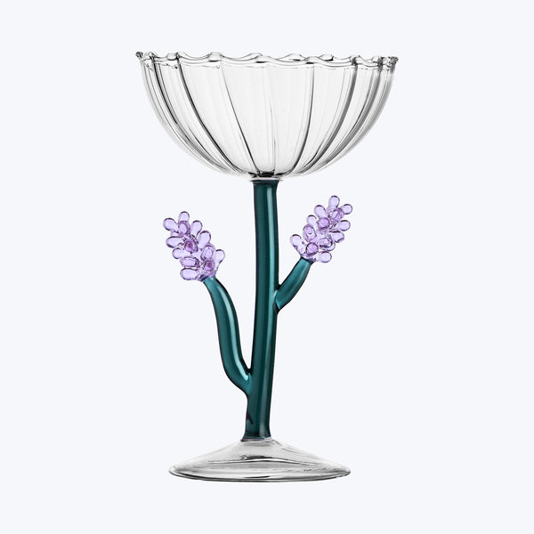 Add a botanical touch to your barware with the Ichendorf Botanica Champagne Bowl. Conceptualized by Milanese designer Alessandra Baldereschi, this extraordinary champagne bowl is guaranteed to wow at your next gathering. Handcrafted in borosilicate glass. Choose from Lavender, Light Blue Flower, Lilac, and White Flower.