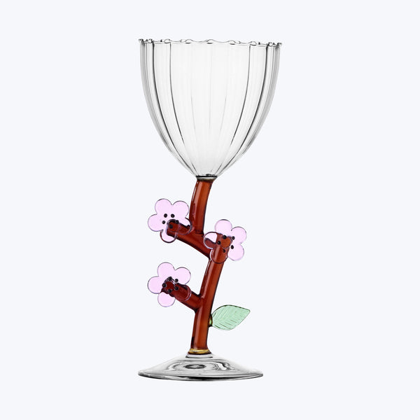 Bring refined whimsy to your barware collection with the Botanica Stemmed Wine Glass, Peach Blossom by Ichendorf Milano. Designed by Alessandra Baldereschi, this stunning wine glass features an elevated, angular silhouette and artisanal embellishments. Handcrafted in borosilicate glass with extraordinary attention to detail.