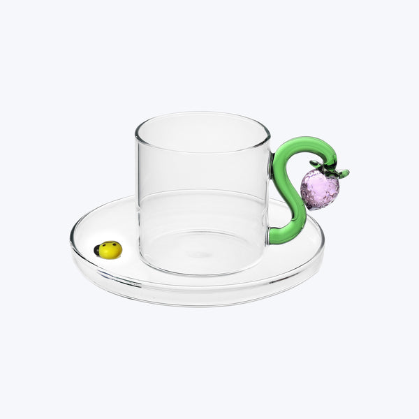 Add playfulness to your morning brew with the Ichendorf Fruits & Flowers Coffee Cup with Saucer, Strawberry. Designed by Alessandra Baldereschi, this gorgeous set is infused with summer’s effortless elegance and joyful whimsy. Handcrafted in borosilicate glass.