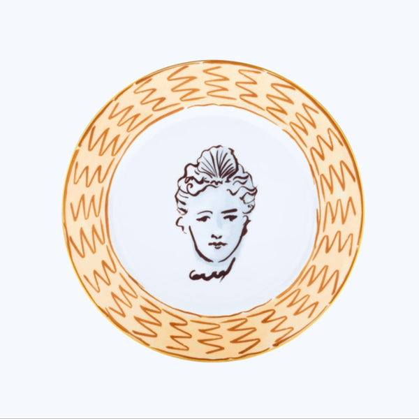 Myth and imagination come together in the Il Viaggio di Nettuno Dinner Plate by Ginori 1735. Crafted in Ginori’s signature porcelain and trimmed with pure gold threading, this stunning dinner plate is the creation of British designer Luke Edward Hall. Merging Greco-Roman narratives with Mediterranean hues, the Viaggio di Nettuno Dinner Plate makes every meal a transportive experience. Made in Italy. Choose from Brown & Light Blue and Green & Yellow combinations.