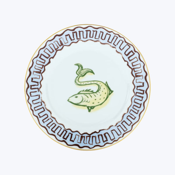 Born from the dreamlike imagination of British designer Luke Edward Hall, the Il Viaggio di Nettuno Flat Dessert Plate makes every meal a transportive experience. This stunning dessert plate is crafted in Ginori’s signature porcelain and trimmed with pure gold threading. Made in Italy. Available in Brown & Light Blue and Light Blue & Yellow editions.