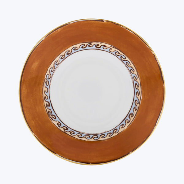 Discover the Il Viaggio di Nettuno Soup Plate by Ginori 1735. Inspired by Greek ceramics and Mediterranean hues, this exquisite soup plate showcases British designer Luke Edward Hall’s creative reimagining of the classical world. Crafted in Italy in fine porcelain and trimmed with pure gold threading. Available in Brown & Light Blue and Green & Yellow combinations.