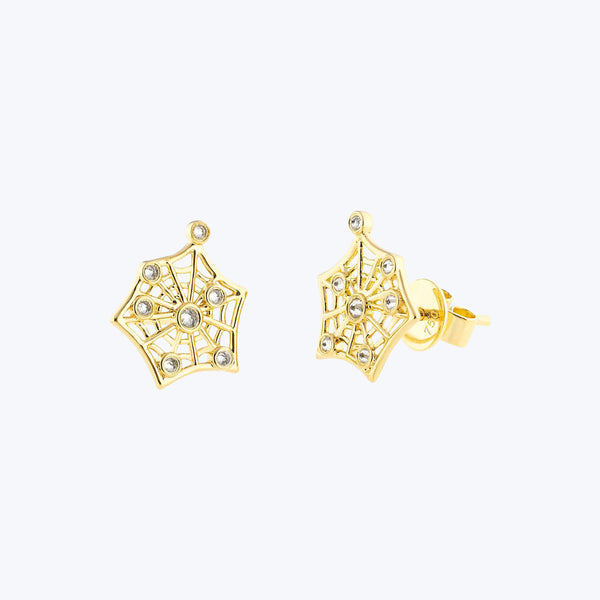The Impeccable Words Creativity Studs are crafted in the shape of a spider web cast in 18K Yellow Gold with .047ct diamond embellishments.
