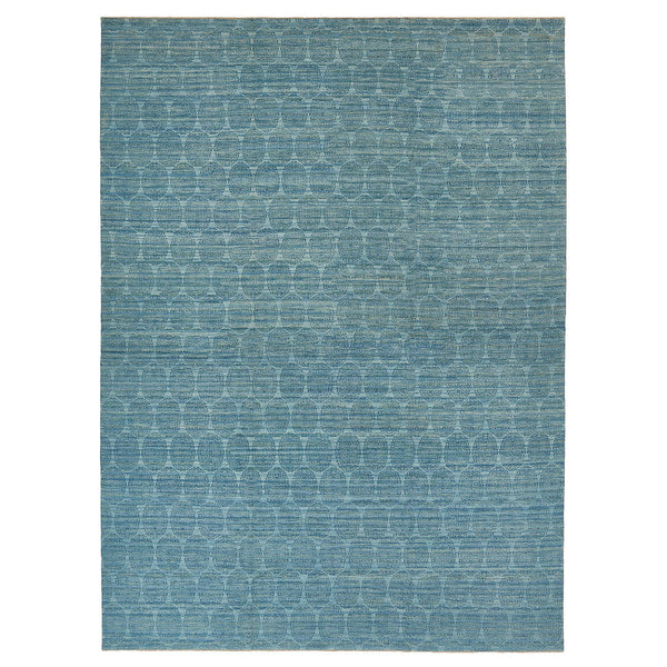 Handwoven from indigo-dyed wool, this Blue Transitional 14' x 20' rug embodies the rich tradition of Central Asian craftsmanship in a soothing, earthy colorway. Created using natural vegetable dyes, the deep indigo tones in this oversized rug are achieved through organic reactions, lending each piece a unique palette with subtle variations. The intricate design draws from time-honored patterns, bringing a sense of history and cultural heritage to your living space.This oversized 14’ x 20’ rug is more than just a...