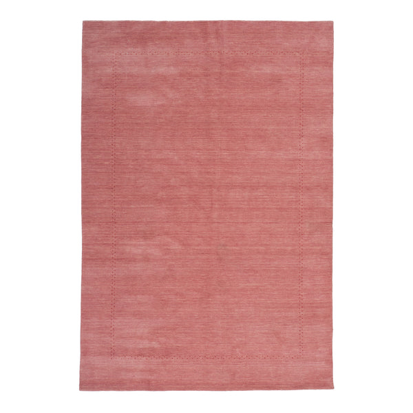 This Pink Solid Indo Gabbeh Rug, measuring 6'2" x 9'1", provides a distinct foundation for various interior styles. Handmade in India, this rug combines traditional craftsmanship with a contemporary color palette and textured finish. The rug is constructed from 100% wool, a natural fiber known for its durability, softness, and insulating properties. Its hand-knotted creation ensures a robust and long-lasting product, designed to withstand daily use. This traditional method of rug making contributes to the rug's overall quality and a...