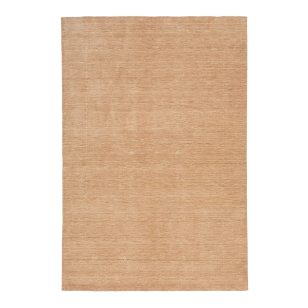 This Indo Gabbeh rug presents a solid, warm brown color in a versatile 6'2" x 9'1" size. Crafted in India, this hand-knotted area rug showcases traditional artisan techniques combined with a contemporary aesthetic. The rug is constructed entirely from wool, a natural fiber known for its durability, softness, and resilience. Each knot is individually tied by hand, a process that ensures a high-quality, long-lasting product capable of withstanding daily foot traffic. This construction method also contributes to the rug's robust...