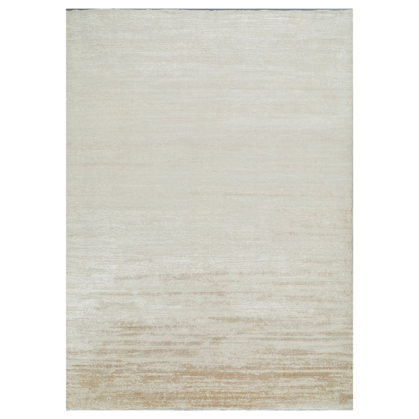 Enhance your space with the Ivory Solid Silk Rug - 10' x 14'. Hand-knotted in India with silk and metallic thread, this solid rug features a subtle textured design in creamy white to light tan hues. The horizontal striped pattern adds visual appeal, creating a versatile and understated piece for any room. Quality craftsmanship and elegant design make this rug a luxurious addition to your home.