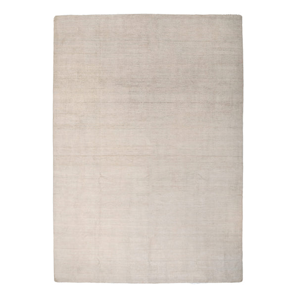 Enhance your space with this Ivory Solid Silk rug. Hand Knotted in India, this luxurious 9'11" x 14' piece features a subtle light color and fine, consistent texture. The minimalist design and high-quality silk material make it a versatile addition to any decor style.