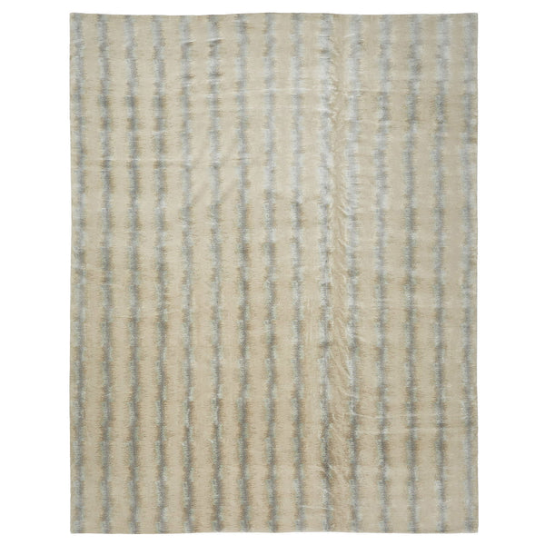 Beige Modern Tibetan Wool Silk Blend Rug - 12' x 15'