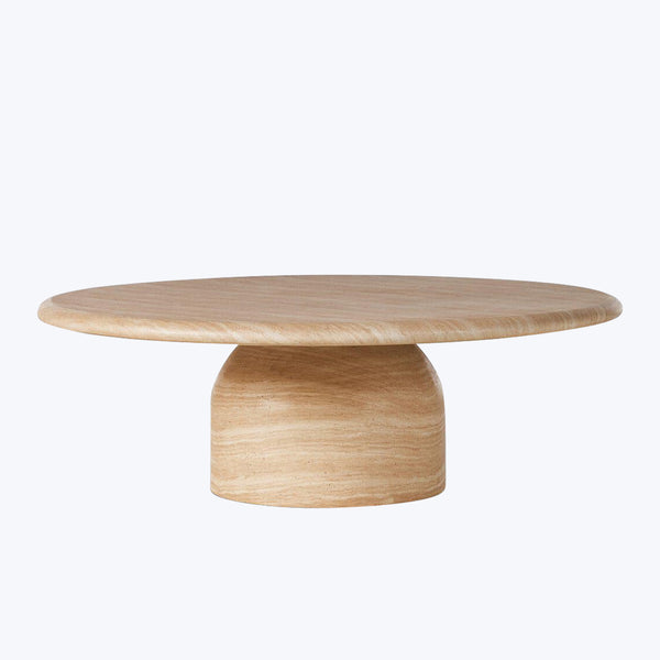 Discover the Janice Coffee Table by Four Hands. Crafted in textured concrete, this commanding piece is finished with a water-transfer solution for a natural stone effect. A stunning dome-shaped pedestal base holds a sleek, rounded tabletop with bullnose edges. Designed for indoor and outdoor use. Simply store the table inside during inclement weather. Available in Textured Lunar Concrete and Sand Striae editions.