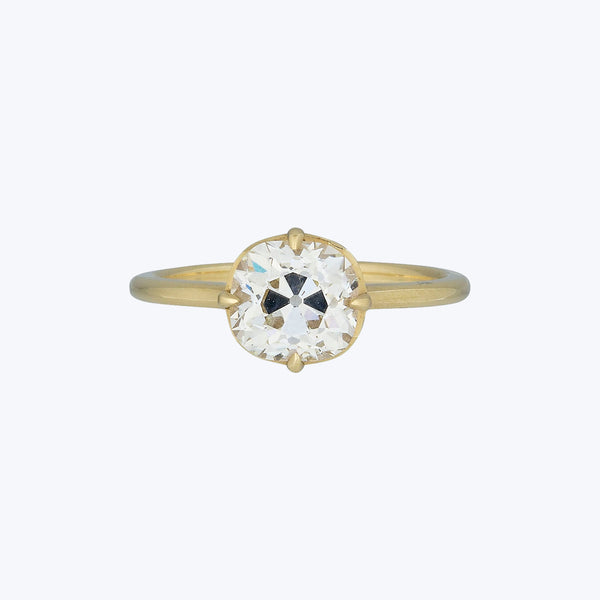 Simple and refined, the Jewels by Grace 18KYG 1.85 ct. Old Mine Cut Diamond Solitaire showcases the enduring beauty of the old mine-cut diamond. Made popular in the early 18th century, old mine-cut diamonds were cut to offer superior sparkle in candlelight settings. This elegant ring is crafted in 18K yellow gold and features a 1.85 ct. diamond. Part of the Jewels by Grace Collection, featuring extraordinary pieces sourced from around the globe.