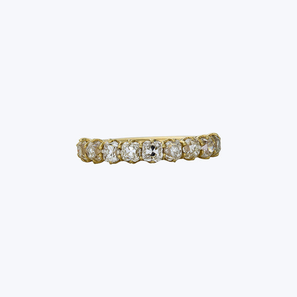 Modeled after antique diamond half-hoop bands from the Georgian and Victorian eras, this band is set with chunky and charming old mine cut diamonds in 18kt yellow gold. The diamonds are bright and sparkly, twinkly and sparkling brightly - so beautiful and elegant on the finger. This is the perfect size for those wanting something smaller and more delicate in scale. Jewels by Grace Contemporary 18K Yellow Gold 1.33 ct. Old Mine Cut Diamond 9-Stone Half-Hoop Band; Size 6; Color...