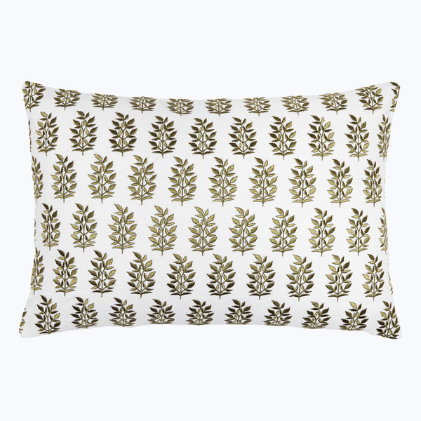 Elevate your space with the Jivan Sage Lumbar Pillow by John Robshaw. Crafted in a soft linen and cotton blend, this exquisite pillow features an embroidered floral front and solid white posterior. A refined choice for adding texture to any bed or living space. Made in India. Known for his beautiful blend of old-world traditions and new-world style, John Robshaw creates exquisite textiles inspired by traditional Indian prints and a centuries-old woodblock printing technique. Dying, printing, and experimenting alongside artisans...