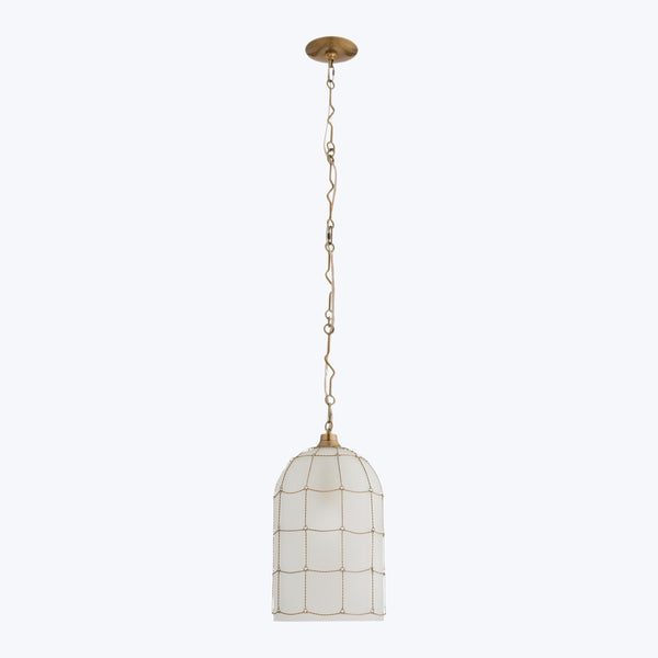 Discover the Jordan Pendant by Arteriors. Featuring a frosted glass dome caged in antique brass chain mail, the Jordan evokes the beauty of jewelry. Hang it in multiples above a kitchen island. A beautiful fixture, seamlessly coupling elegance and edge to bring elevated design to contemporary spaces.