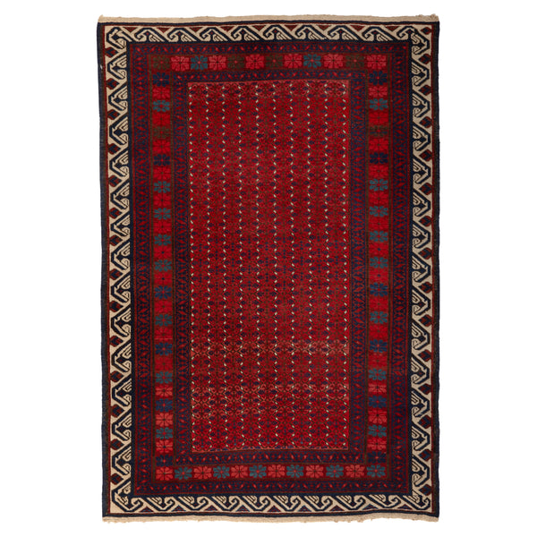 The Floral Kazak Wool Rug - 3'7" x 5'4" is a captivating traditional rug from Turkey. Its vibrant red and black colors create a bold and striking image, with a complex pattern of florals and geometric motifs. Hand-knotted out of high-quality wool, this one-of-a-kind rug showcases intricate details at its center. Its exquisite texture and use of natural fibers make it a timeless piece of art for any space. An exemplary of traditional design and craft, this one-of-a-kind wool rug...